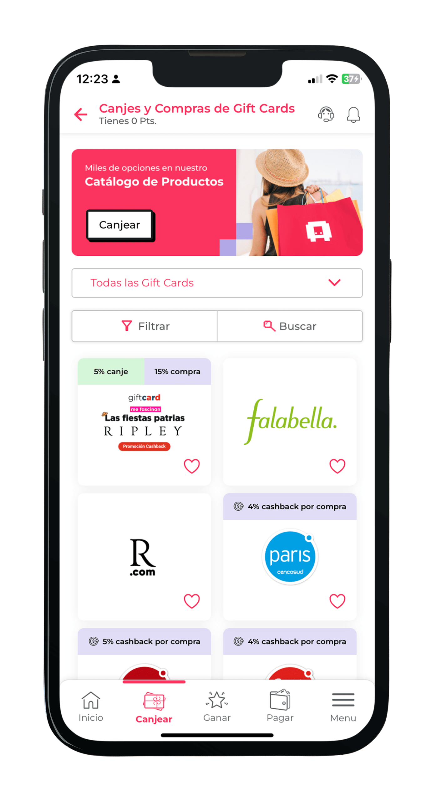 Podrás acceder a más de 15 categorías de gift cards, entre ellas de supermercado, retail, entretención y más.