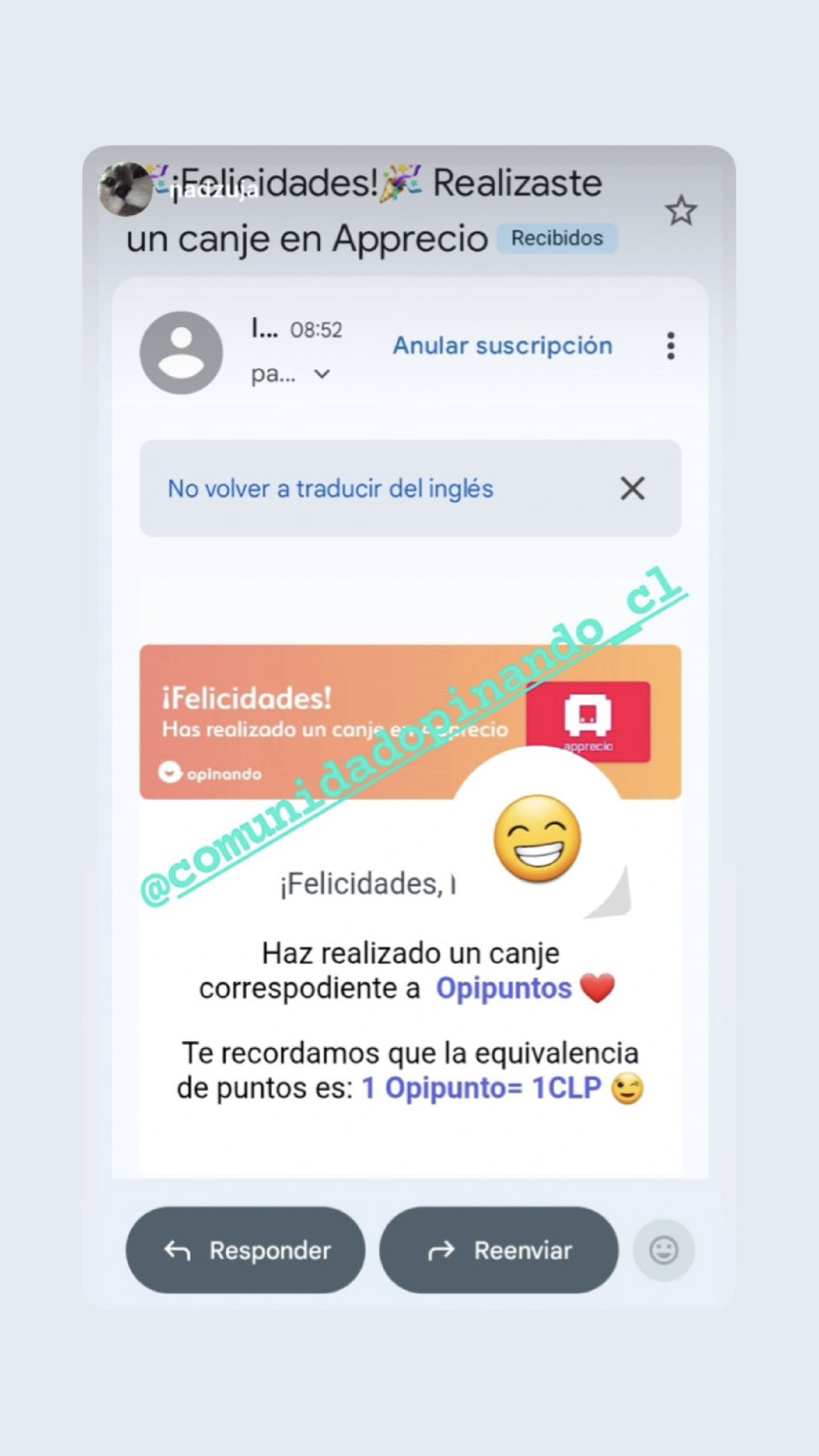 - Nosotros nos encargaremos de transferir tus Opipuntos a tu cuenta Apprecio.